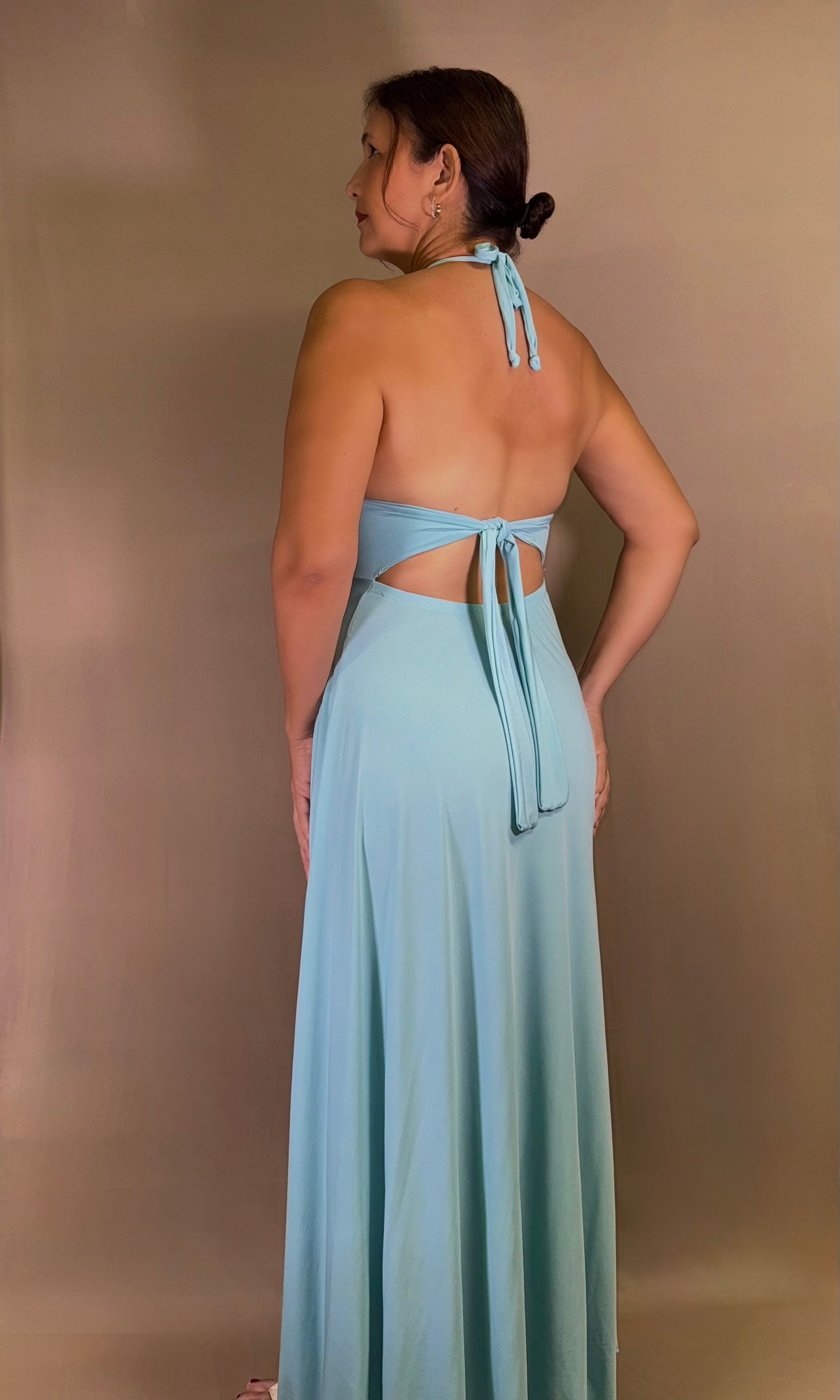 This high-quality halter maxi dress is made from soft, breathable Lycra, offering a luxurious feel and a flattering, flowy silhouette. Perfect for any occasion, its effortless elegance and comfort makes it a timeless wardrobe staple.